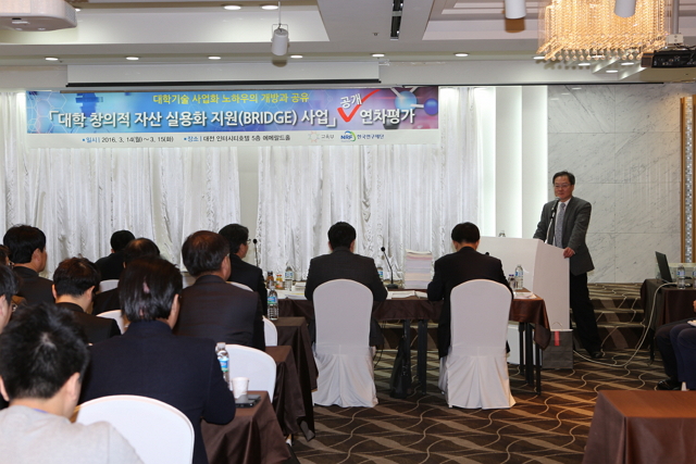 | ▲ 대학 창의적 자산 실용화 지원사업의 공개 연차평가 현장. 이러한 공개평가는 정부의 재정지원사업 평가 중 최초로 시도된 것으로 긍정적으로 평가됐다.(이미지출처: 한국연구재단) | ||