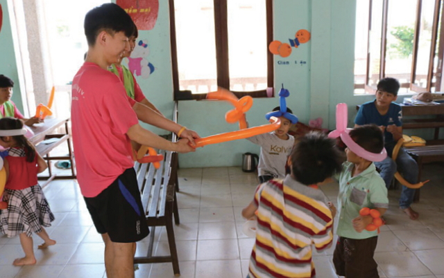 지난 11월 예체능대학(생활스포츠학부ㆍ생활무용예술학과), 공학대학(생명나노공학과ㆍ기계공학과), 경상대학(경영학부ㆍ경제학부), 국제문화대학(문화인류학과ㆍ영미언어문화학과) 학우들이 ‘봉사’라는 한 뜻으로 한 자리에 모였다. 바로 ‘한누리봄’이다. 이들은 베트남에 떠나기 전 두달여 동안 직접 봉사활동 프로그램을 계획했다. 퀴논 주민들과의 소통을 위해 한국어 교육은 물론이거니와 한국 문화를 체험할 수 있도록 제기차기, 투호 등 다양한 전통게임을 준비했다. 이외에도 문화공연으로 K-POP과 한국의 전통 춤과 무용, 태권도를 준비했다.