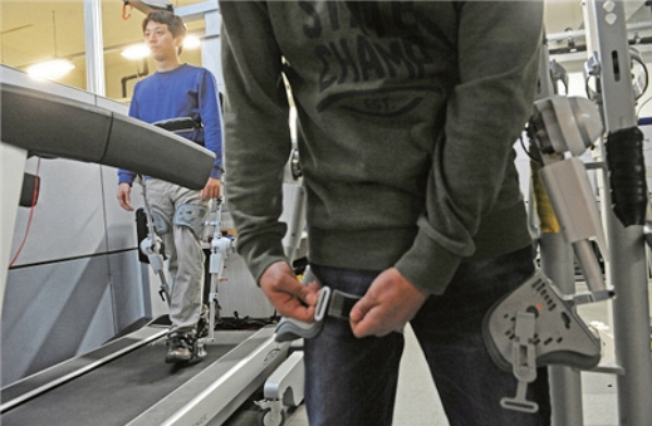 한양대 ERICA캠퍼스 로봇 연구실에서 한창수 로봇공학과 교수 연구팀 연구원들이 임상실험 중인 편마비 하지재활 로봇인 HEXAR WA/H, 하지보행 보조기기, 무릎관절 기능 복원 휴대용 보조로봇에 대한 연구를 하고 있다. 한양대 재활치료 로봇은 소형, 경량화를 목표로 상,하지 마비환자를 위한 로봇재활치료의 새 장을 열 전망이다.