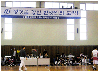 ‘정상을 향한 한양인의 도약’이라는 모토를 갖고 진행된 올해 학맥제는 대학원생들의 배구경기로 막이 올랐다. 서울과 안산으로 팀을 나누지 않고 경기가 진행돼 학생들은 모두 한마음이 되어 응원했다. 이어 오후에는 농구대회가 열렸다. 치열한 접전 끝에 우승은 체대 팀에 돌아갔다. 경기가 끝나고 선수로 뛴 학생들은 악수를 하며 서로를 격려하고 응원했다. 손성빈(생체대·생활체육3)군은 “같은 학교에서 체육관련 수업을 듣는 학생들과 경기를 한다는 생각에 마음이 편했다”며 “함께 즐길 수 있어 좋은 기회인 것 같다”며 즐거운 표정을 지었다.