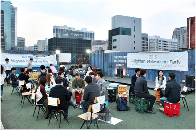 | ▲ 올라이튼 공모전의 시상식은 모든 참가자들이 자유롭게 이야기 나누는 분위기로 진행됐다. (출처: 인라이튼) | ||