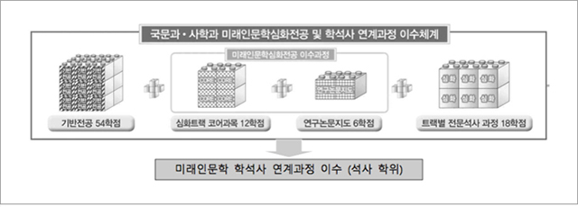 학제간 횡단형의 인문학 연구자 양성을 목표로 하는 ‘미래인문학 심화전공’은 기초학문심화 모델의 일환으로 개설된다. 우수한 학부생에게 더욱 깊이 있는 학습 기회를 제공하고, 진로 지도를 통해 대학원 과정으로 유치하는 것이 심화전공 프로그램의 목적이다. 국문과와 사학과 학생은 3학년부터 심화전공 과정을 통해 대학원 학석사 연계과정을 이수할 수 있다. 주전공 54학점에 더해 심화트랙 코어과목 12학점, 학위논문지도 6학점을 이수하고 대학원에 진학하면 석사과정을 빠르게 마칠 수 있다. 심화전공을 이수하는 학생도 석사과정 진학을 조건으로 장학금을 받는다. 이미 우수한 연구 인프라를 갖춘 국문과와 사학과 대학원은 이번 사업을 통해 더욱 안정적으로 석박사 인력을 배출할 수 있게 된다.