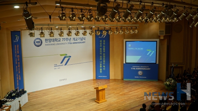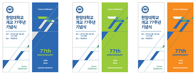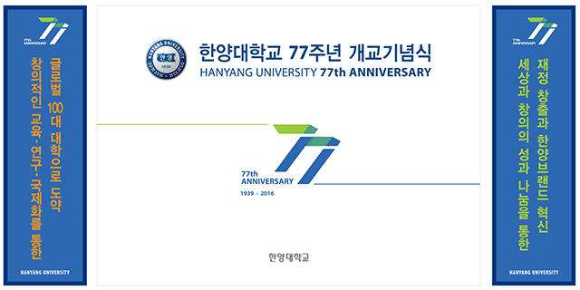 매년 개교기념일 즈음하여 그 해의 기념 엠블럼을 제작하고 있는 디자인경영센터에서는 올해 77주년에 해당하는 공식 엠블럼을 발표했다. 77이라는 숫자 자체가 가지는 동일 형태의 반복이라는 특징을 최대한 살리고 색상과 형태 변형을 통해 입체감을 살린 것이 특징. 기념 엠블럼은 개교기념식 무대 배경을 비롯해 가로등 배너와 기타 각종 인쇄물 등에 활용될 예정이다.