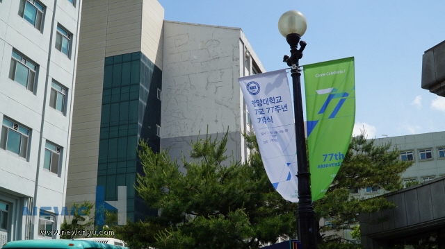 | ▲ 캠퍼스 내 77주년 개교기념 가로등 배너 | ||