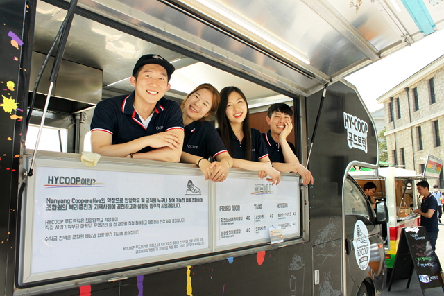 지난 교내 축제 기간에 푸드트럭 시범 운영을 마친 HYCOOP은 캠퍼스 푸드트럭 현장을 학생들이 기업가정신을 체험할 수 있는 취·창업 현장 실습 공간으로 활용한다. HYCOOP 조합원들은 사업 기획부터 홍보, 마케팅, 운영관리까지 창업 전 과정을 체험할 수 있다.