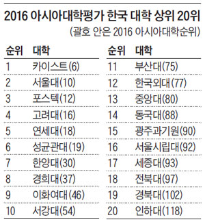 | ▶ QS 공식 홈페이지 '2016 아시아 랭킹' 페이지 바로 가기(클릭)