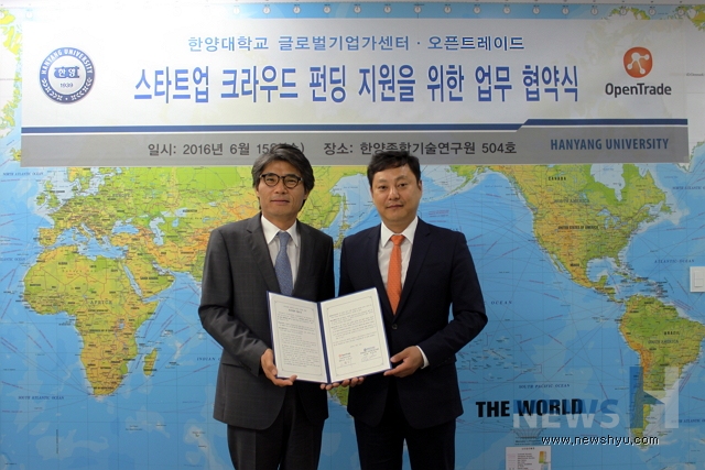 이번 업무협약에 따라 한양대는 현재 진행 중인 2016 벤처창업경진대회를 통해 선발된 우수 창업팀을 대상으로 오픈트레이드의 모의 크라우드 펀딩을 진행할 계획이다.