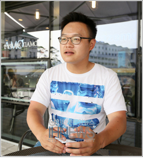 | ▲ 순례길을 걸으며 헌혈증을 기부한 임충만(경영 학부 4) 씨가 13일 노천극장의 카페에서 자신의 봉 사 활동에 대해 말하고 있다. | ||