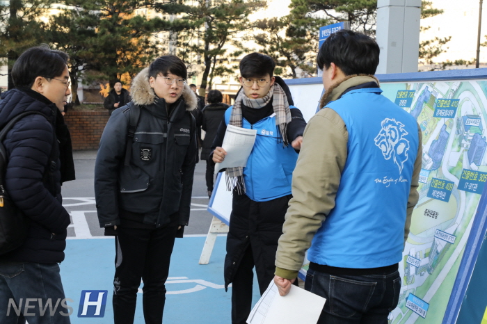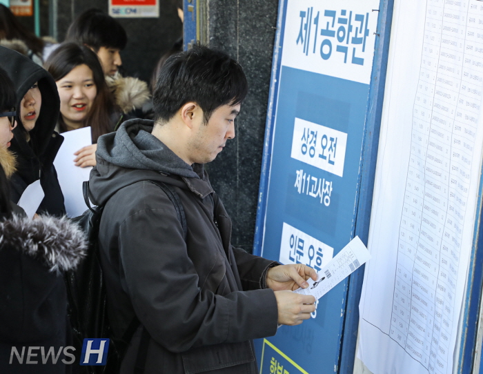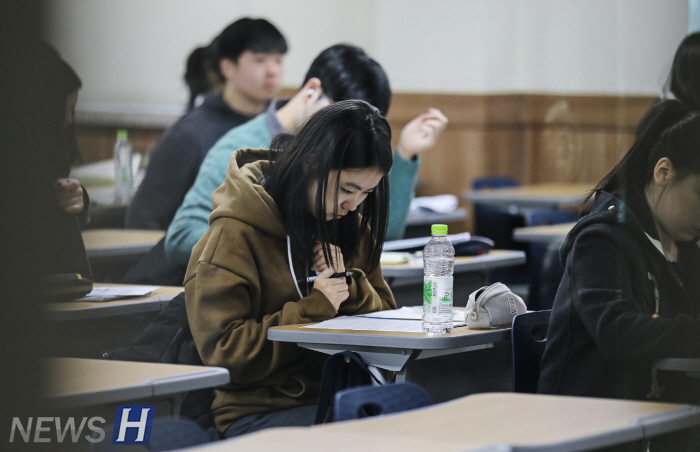 12월 2일 오전 서울 성동구 한양대 서울캠퍼스에서 2018 인문‧상경계열 논술고사가 치러졌다. 12월 2일부터 이틀간 실시되는 한양대 2018학년도 수시 논술고사에는 3만 4710명이 지원, 87.65:1의 경쟁률을 보였다. ▲2일 오전 서울 성동구 한양대 서울캠퍼스에서 치러진 2018 인문‧상경계열 논술고사에서 수험생들이 안내요원의 도움을 받아 고사장을 확인하고 있다.▲2018 인문‧상경계열 논술고사에서 수험생들이 고사실을 확인하고 있다.▲2018 인문‧상경계열 논술고사에서 수험생이 시험 시작을 앞두고 마지막 점검을 하고 있다.▲2018 인문‧상경계열 논술고사에서 수험생들이 시험 시작을 앞두고 마지막 점검을 하고 있다. ▲2018 인문‧상경계열 논술고사에서 수험생들이 시험 시작을 앞두고 마지막 점검을 하고 있다.▲2018 인문‧상경계열 논술고사에서 감독관이 수험생 대상 본인확인을 하고 있다.▲2018학년도 한양대 수시 인문‧상경계열 논술고사에 응시했던 수험생들이 2일 논술고사 장소인 서울 성동구 한양대 캠퍼스를 빠져나가고 있다.