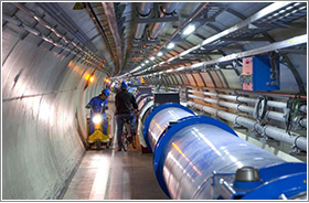 | ▲ 이번 CERN 가상 투어는 CMS를 이용한 실험이 어떻게 진행되는지 학생들에게 알려주고자 기획됐 다. 사진은 CERN의 연구원들이 대형강입자충돌기 를 점검하는 모습 (출처 : CERN) | ||