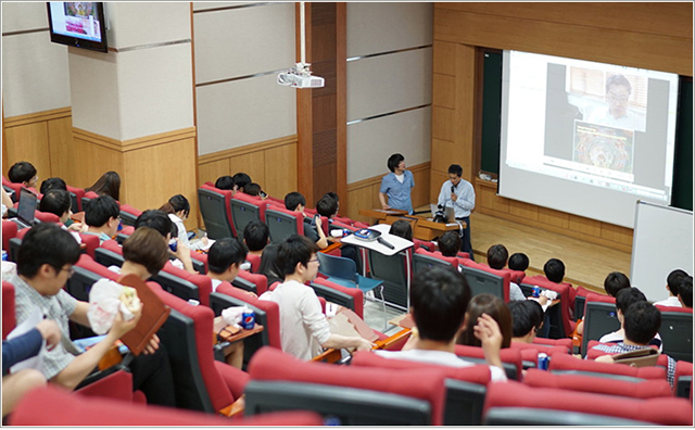 한국에서 7시간 떨어진 CERN 현지와 인터넷 생중계로 연결한 행사에선 CMS 주요 시설과 실험이 소개됐다. 현재 CERN에서 연구원으로 파견근무 중인 고정환 박사가 직접 카메라를 들고서 설명하는 방식으로 투어가 진행됐다. 지상에 있는 다양한 시설부터 모니터 룸, 지하 100m에 위치한 검출기와 실험 과정, 연구원들의 모습까지. 현장의 분위기는 화면을 통해 생생하게 전달됐다. 자유로운 분위기 속에 학생들의 질문도 그치지 않았다. 김태정 교수는 “학생들이 따로 공부를 해왔나 싶을 정도로 질의응답이 활발했다”고 말했다. “힉스 입자와 관련된 입자물리학은 한양대에서 따로 연구한 적이 없음에도 행사에 참여한 학생들이 적극적으로 질문을 던졌습니다. 수준이 생각보다 높아서 놀랐죠.”
