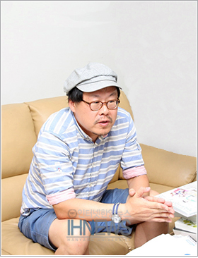 | ▲ 신인철 교수(생명과학과)와 지난 6월 22일 신인 철 교수의 연구실에서 만나 이야기를 나눴다. 신인 철 교수는 최근 '카툰 콜리지'의 두번째 시리즈 <생 물학 신 완전정복>을 출간했다. | ||