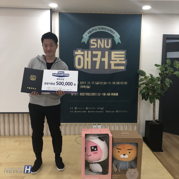 이번 SNU 해커톤은 서울대, 중소벤처기업부, 창업진흥원이 공동 주최한 행사로, 예선을 통과한 전국 대학생 60명이 본선에 올라 혁신적인 제품을 디자인해 선보였다. 본 대회에서 우승의 영예를 안은 이 학생은 상장과 상금 50만원을 수여했다.