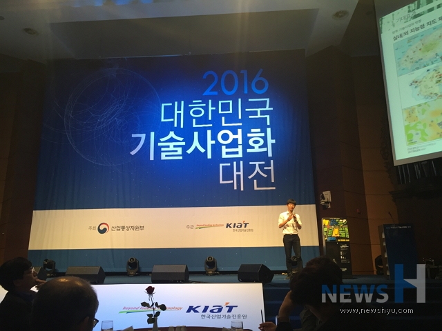 | ▲ 한양대 학생 창업동아리 3D Makers의 김재혁씨가 지난 6일 2016 기술사업화대전 본선에 진출해 3D촉지도 아이템을 발표하고 있다. | ||