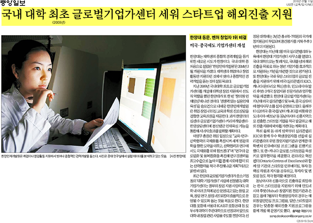 한양대는 재학생의 종합적 경력개발을 돕기 위한 새로운 시도를 하고 있는데요. 2009년 국내대학 최초로 글로벌기업가센터를 개설한 한양대가 2014년 3월에는 '한양인재개발원'을 설립해 재학생의 취업이나 창업 활동만 지원하던 것에서 벗어나 종합적인 경력개발을 돕고 있습니다. 또한 한양대는 지난해 1월 미국 실리콘밸리와 뉴욕에서 한양대 기업가센터 사무소를 열었는데요. 국내 대학으로는 첫 쾌거로, 국내를 넘어 해외 진출을 목표로 하는 청년 기업가를 효과적으로 지원하는 기반을 마련한 것으로 평가되고 있습니다.