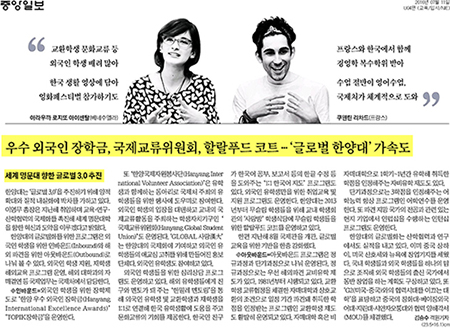 지난해 이영무 총장은 취임과 함께 글로벌 3.0의 추진이라는 세부목표를 내세우며, 이를 추진하기 위해 양적 확대와 질적 내실화에 박차를 가하고 있는데요. 한양대의 글로벌화를 위한 프로그램으로는 외국인 학생을 위한 인바운드와 해외 파견을 위한 아웃바운드로 나눠 볼 수 있습니다. 한양대의 글로벌화는 산학협력과 연구에서도 실적을 내고 있습니다. 이미 중국 상하이, 미국 산호세와 뉴욕에 창업기지를 세웠고 'G2(미국·중국)와의 협력시대를 이끄는 대학'을 표방하고 중국의 칭화대·베이징외국어대·지린대·시안자오퉁대와 협력 양해각서를 체결했습니다.