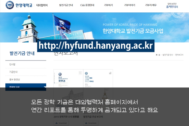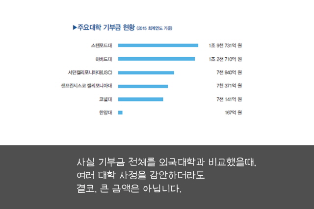 한양대 기부금 현황 … 장학금 조성에 참여 호소