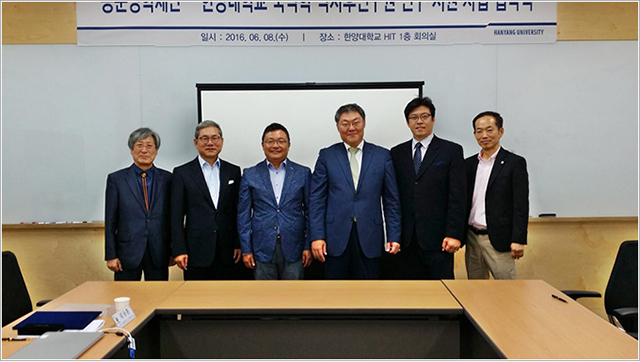 | 우리대학이 용운장학재단의 지원을 받아 우리대학 국악박사 출신 연구원을 지원한다. 지난 6월 8일, 한양종합기술원 1층에서 ‘용운장학재단-한양대학교 국악학 박사후연구원 연구지원 사업 협약식’이 열렸다. 협약식에는 우리대학 산학협력단장 안진호 교수(산학협력단), 연구책임자 김영운 교수(국악과)와 용운장학재단 조락교 이사장 등이 참석했다. 이번 협약을 통해 용운장학재단은 민간 과제 연구지원의 형태로 연간 총 3600만원의 연구비 지원을 약속했다. |