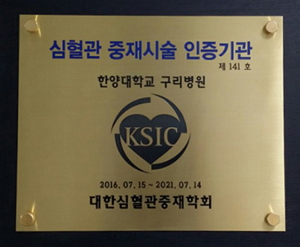 한양대학교구리병원이 최근 대한심혈관중재학회에서 주관하는 ‘심혈관 중재시술 인증기관’으로 선정되었다.