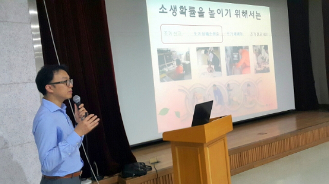 | ▲ 더위 관련 질환을 포함해 생활 속 응급상황 대처법에 대해 강연하는 최혁중 교수. | ||