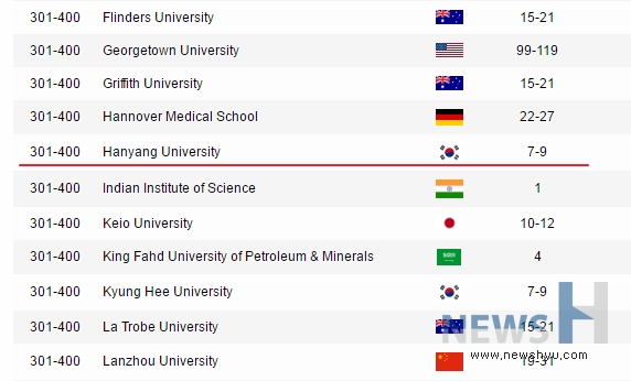 한양대는 전년과 동일한 300위권(301~400위)에 이름을 올렸다. 300위권에 처음 이름을 올린 2008년 이후 꾸준히 유지하고 있는 상황이다. 하지만 국내순위에서는 7~9위 사이로 한 계단 밀려나게 됐다.
