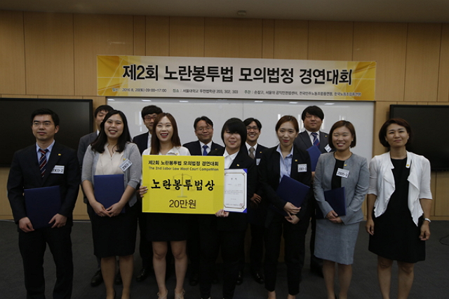 이날 대회는 서면 심사를 통과한 8개 팀이 본선에 올라 ‘원청의 불법파견에 맞선 비정규직 노동자에 대한 손배소’를 주제로 경연을 했다. 가상의 ‘한국자동차’가 불법파견에 맞선 ‘손잡고 비정규직노동조합’의 파업을 두고 노동조합과 노조위원장 개인에게 160억 원의 손해배상을 청구했다고 가정한 후 이에 대해 4팀씩 나뉘어 원고와 피고 모두에 변론을 펼쳤다.