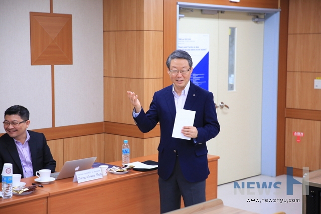 | ▲ 사진은 이영무 한양대 총장이 환영사를 하고 있는 모습 | ||