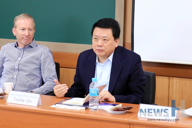 | ▲ 사진은 중국의 3대 국제정치이론가로 알려진 중국외교대학(CFAU) 총장이자 중국국립외교원(CDA) 원장인 친야칭(秦亞靑) 교수가 학술토의를 하고 있는 모습 | ||