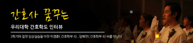 Q. 안녕하세요. 간호학부에서의 3년 반을 마치고 한 학기만을 앞둔 두 분입니다. 간호학부에 입학한 계기는 무엇인가요?