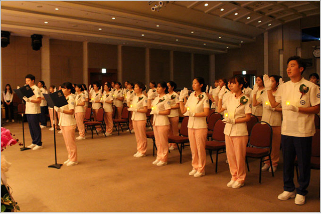 | ▲ 지난해 11월 열린 제45회 나이팅게일 선서식. 나이팅게일 선서식은 예비 간호사로서의 헌신을 약속하는 자리다. (출처: 간호학부 홈페이지) | ||