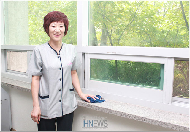 | ▲ 정윤자 씨(미화팀)는 청소 중이었지만 웃으며 반가움을 드러냈다. | ||