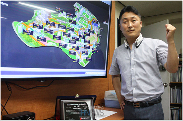 김지용 대리(시설팀)는 비 및 캠퍼스의 냉난방 온도를 조절해요. 전기가 부족한 순간에 절약하면, 전기가 넉넉할 때 저렴하게 이용할 수 있다는 걸 아시나요? 이 부분을 시설팀에서 관리하죠.” 여름에는 에어컨 온도 조절을 세심하게 해야 한다. “중앙에서 기준 온도를 정하면 각 강의실에서 오차 범위 1도 안에서 나옵니다. 그런데 실험실 같은 경우에는 온도 조건이 중요해 따로 요구사항을 받아요.” 에너지 절약을 위해 애쓰는 시설팀도 기록적인 폭염이 계속된 이번 여름에는 강의실 적정 온도를 지난해에 비해 1도 낮췄다. 그럼에도 지난해에 비해 전력 사용량을 줄인 것이 성과다. “정몽구 미래자동차연구센터와 국제관이 지난해 새롭게 열린 데다 올해가 무척 더웠음에도 지난해 비슷한 시기보다 사용량이 줄었어요. 줄일 수 있는 부분에서 최대한 절약한 결과죠.”