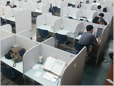 이윽고 자율위원 신현식(공과대·지구환경3), 김상익(토목4), 박종웅(토목3)군은 중도 지하 1층 휴게실 화장실 곳곳에 “사석 정리합니다! 사석 정리합니다.”를 우렁차게 외친다. 저기 휴게실 한 구석에 자고 있는 학생을 깨우며 사석정리를 알려주니 부스스 일어나며 재빨리 제 1열람실로 들어간다.