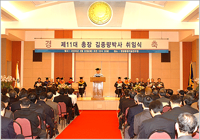제 11대 총장에 김종량(사범대·교육공학) 교수가 취임했다. 지난 22일 한양종합기술연구원 6층 대회의실에서 취임식을 가진 김종량 신임 총장은 앞으로 임기 4년 동안 총장직을 수행하게 된다. 본 취임식은 오전 10시 30분부터 시작됐다. 이해성 명예총장, 이리형 서울캠퍼스 부총장, 김수삼 안산캠퍼스 부총장, 이진성 한양여대 학장 등 학교 관계자와 한양학원 최선근 이사, 이현섭 이사, 박경식 이사, 백재흠 이사 등 재단 관계자, 김진열 동문회장, 남서울대학 이사장인 이재식 동문 등 동문관계자 및 많은 교직원과 학생이 참석해 김종량 총장의 취임을 축하했다.