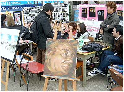 ‘애지문 갤러리’에 가보았는가? 본교 동아리 회원 공개모집 사상 최초로 애지문에 공개 전시회장이 마련됐다. 미술동아리 ‘그리아미’가 빗물, 한강다리, 꽃 등을 주제로 한 유화 여덟 작품을 전시한 것을 비롯하여 서체에서부터 진지함이 묻어나오는 ‘한양서예회’가 다섯 점의 작품을, 시사만화패 ‘그릴마당’의 만화캐릭터 여섯 작품, 사진 연구회 'HYPO'의 미소 짓는 신부와 하늘을 나는 새 등 독특함이 돋보이는 작품 여덟 점을 전시해 애지문을 오가는 새내기들의 발걸음을 한동안 붙잡아 뒀다. 전시장에서 만난 박지연(공과대· 화학공학 1) 양은 “아마추어답지 않은 선배님들의 실력에 놀랐다”라며 “특히 HYPO 작품 중, 폐교의 교실 안 풍경을 담아낸 사진이 인상적이었다”라고 동아리 가입 신청을 위해 곧장 가두모집행사장으로 행보를 재촉했다.