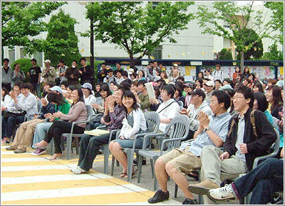 올 축제 기간에도 동문들의 모교 사랑은 계속된다. 18일 오후 민주 광장을 가득 채운 조혜련(인문대·연극영화 졸) 씨의 길거리 특강은 쌀쌀한 날씨 속에서도 후배 사랑의 훈훈함 묻어난 시간이었다. 특유의 유머를 곁들여 시간의 소중함과 자기 계발의 중요성을 설명하던 조 동문. 그녀는 ‘아나까나 송’을 즉석에서 부르는 등 시종일관 화기애애한 분위기를 이끌었다. 하이틴 스타로 우뚝 선 강동원(공학대·기계) 군은 별망제 마지막 날 ‘끼 페스티발’ 무대에 오른다. 홍보대사 임명식과 함께 재학생으론 최초로 장학금도 기탁할 예정이다. 오늘 저녁 6시, 치열한 경쟁을 뚫고 올라온 10팀과 강동원 군의 모습을 노천극장에서 확인 할 수 있다.