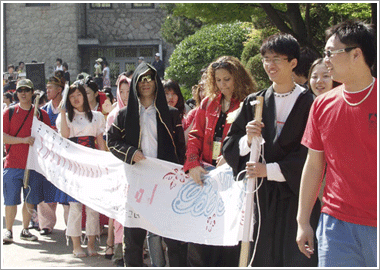 구체적인 행사로는 국제어학원이 지원하는 영어 레벨 테스트를 비롯해 외국 학생들이 직접 자신들의 나라에서 가볼 만한 곳을 추천하는 해외여행 정보박람회도 갖았다. 가장 주목받은 행사는 20여 명의 국제학생회 학생들이 한국, 중국, 터키, 네팔, 일본 등의 전통의상을 입고 학내를 순회하는 외국의상 가장행렬이었다. 가장 행렬을 관람한 정규태(공과대·도시환경건설 1) 군은 “외국 학생이 우리 전통 혼례복을 입은 모습이 인상적이었다. 또 텔레비전에서만 본 일본의 기모노나 중국의 지파오, 탕정 등을 실제로 볼 수 있어 좋았다”며 국제학생회에 함께 하고 싶다는 의사를 보였다.
