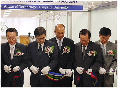 본교와 일본의 이화학연구소(이하 RIKEN)가 본격적인 공동연구의 구심점을 마련했다. 본교와 이화학연구소를 중심으로 여러 기관 및 대학들이 앞으로 공동연구를 진행하게 될 ‘한양대-RIKEN 협력연구실(이하 협력연구실)’이 지난달 30일 현판식을 갖고 한양종합기술연구동 B-212호실에 둥지를 튼 것. 이날 행사는 김종량 총장을 비롯한 본교 교수들과 일본 RIKEN의 코헤이 다마오(Kohei TAMAO) 교수, 마키 가와이(Maki KAWAI) 교수, 마사히 코 하라(Masahiko HARA) 교수 등이 참석한 가운데 진행됐다.