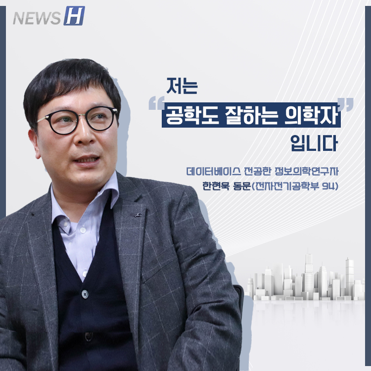 데이터베이스 전공한 정보의학연구자 한현욱 동문(전자전기공학부 94) ▲ 카드뉴스의 원본 기사는 아래에서 읽을 수 있습니다-공학도 잘하는 의학자입니다▲ Click to read the English article-Breaking Barriers for the Future of Medicine▲ 한현욱 동문 [블로그] 김지민 spotlight_5@naver.com 다른기사 보기 저작권자 © 뉴스H 무단전재 및 재배포 금지 당신만 안 본 뉴스 [포토스토리] "AI 시대 해답은 브랜딩", 오세훈 서울시장의 경영학 특강 현장 Into the Creation 2025, 창작자들의 꿈에 날개를 이찬규 학생, 사이버·우주 융합연구로 2025 사이버안보논문공모전 대상 수상 한양대, '2026 QS 지속가능성 순위' 세계 161위, 국내 4위 기록 해커톤에서 인턴십까지, 현대차 사내 스타트업에 다녀오다 [창업지원단 인턴십 경험기] [포토스토리] 한양 속에 사회혁신을 품다, SSIR 먼슬리 콜로키움 현장 행복은 좋은 경험의 ‘빈도’에서, 서은국 교수와 함께한 한양인의 힐링콘서트 현장 2025 중앙일보 대학평가 서울 3위, ERICA 13위 댓글삭제 삭제한 댓글은 다시 복구할 수 없습니다. 그래도 삭제하시겠습니까? 비밀번호 닫기 기사 댓글 0 댓글 접기 로그인 후 이용 가능합니다. 댓글 내용입력 비회원 로그인 이름 비밀번호 댓글 내용입력 댓글쓰기 계정을 선택하시면 로그인·계정인증을 통해 댓글을 남기실 수 있습니다. 회원 로그인 비회원 글쓰기 이름 비밀번호 자동등록방지 로그인 옵션 창닫기 기획기사 [포토스토리] "AI 시대 해답은 브랜딩", 오세훈 서울시장의 경영학 특강 현장 Into the Creation 2025, 창작자들의 꿈에 날개를 해커톤에서 인턴십까지, 현대차 사내 스타트업에 다녀오다 [창업지원단 인턴십 경험기] [포토스토리] 한양 속에 사회혁신을 품다, SSIR 먼슬리 콜로키움 현장 행복은 좋은 경험의 ‘빈도’에서, 서은국 교수와 함께한 한양인의 힐링콘서트 현장 [카드뉴스] '한양대학교 SDGs? 알고 보니 내 일상 속에 있었다!' 1편