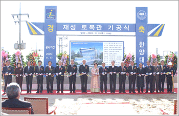 지난 17일 오전 11시 토목공학관 옆 부지에서 재성 토목관 기공식 열렸다. 이 기공식은 김종량 총장, 한재성(토목 54년 졸) 동문, 한가람회 회장이자 현대건설 사장인 이지송 동문을 비롯해 동문, 교수, 그 외 귀빈들이 참석한 가운데 치러졌다. 재성 토목관은 본교 토목공학과 54년 졸업생인 송재성 동문이 지난 2003년 쾌척한 55억원의 기금으로 건립되는 건물로, 대학 발전은 물론 대학 기부 문화의 물꼬를 텃다는 점에서 큰 의미를 가진다.