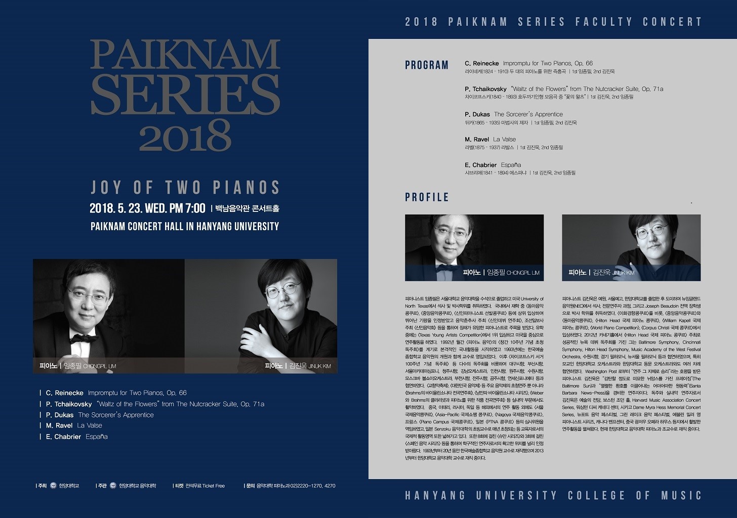 올해 첫 번째 백남시리즈는 임종필·김진욱 피아노과 교수의 ‘Joy of Two Pianos’ 무대로 꾸며진다.