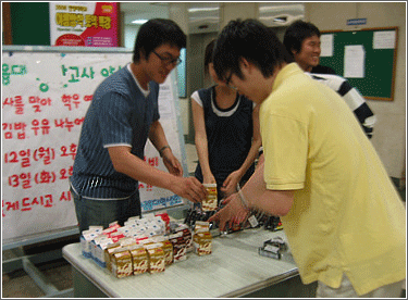 학생증을 소지한 학생에 한하여 1인 1set를 배포하는 이 행사는 저녁식사 후 늦은 시각까지 공부하는 학생들에게 큰 호응을 얻고 있다. 학생들은 출출함을 느낄 시간에 허기를 달래기도하고 친구들과 삼삼오오 모여 야식을 먹으며 기분을 전환하고 잠을 쫓기도 하는 모습이었다. 간혹 친분이 있는 학생들과 야식을 더 타내려는 실랑이가 벌어지기도 하지만 이는 귀여운 애교로 보여 졌다.