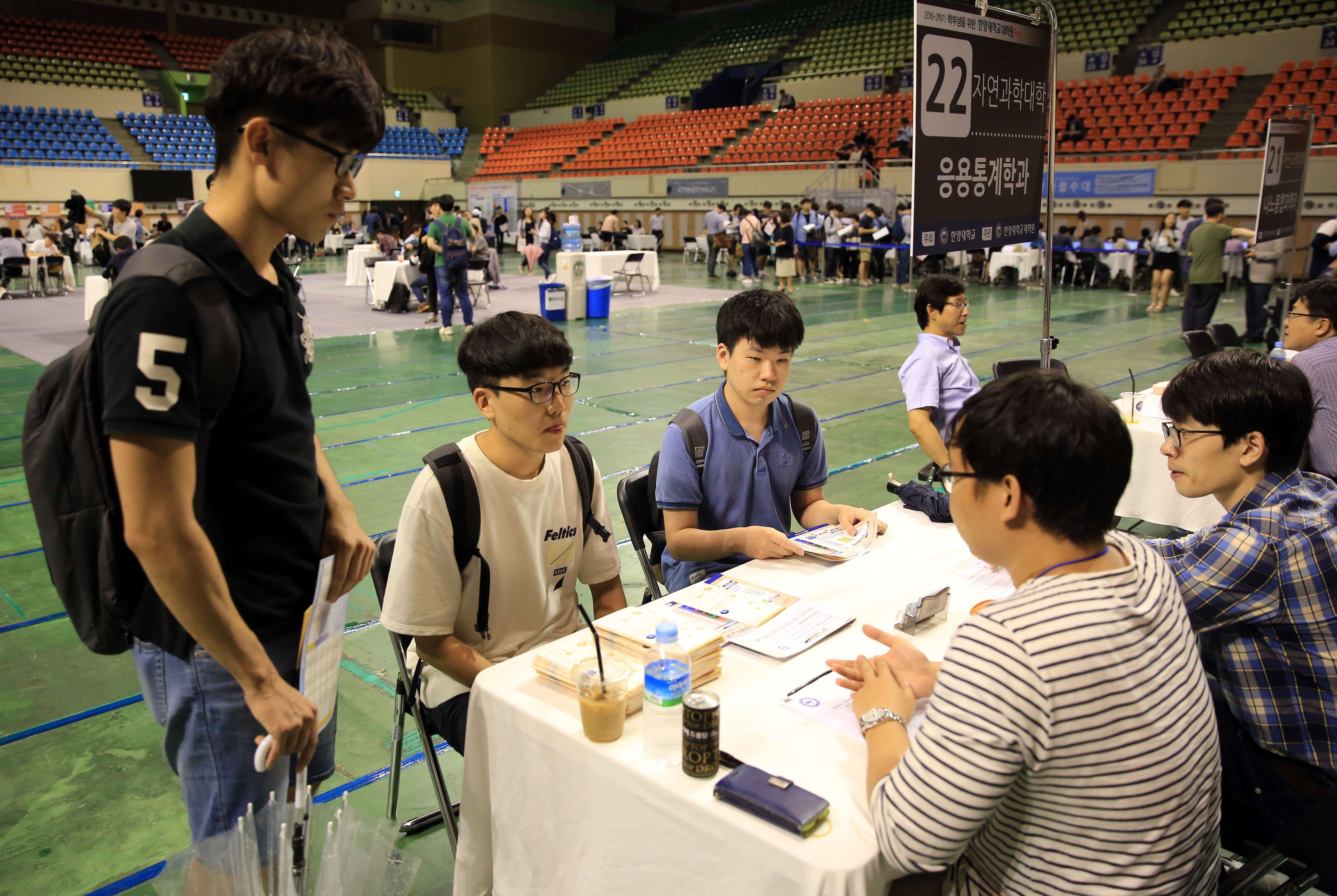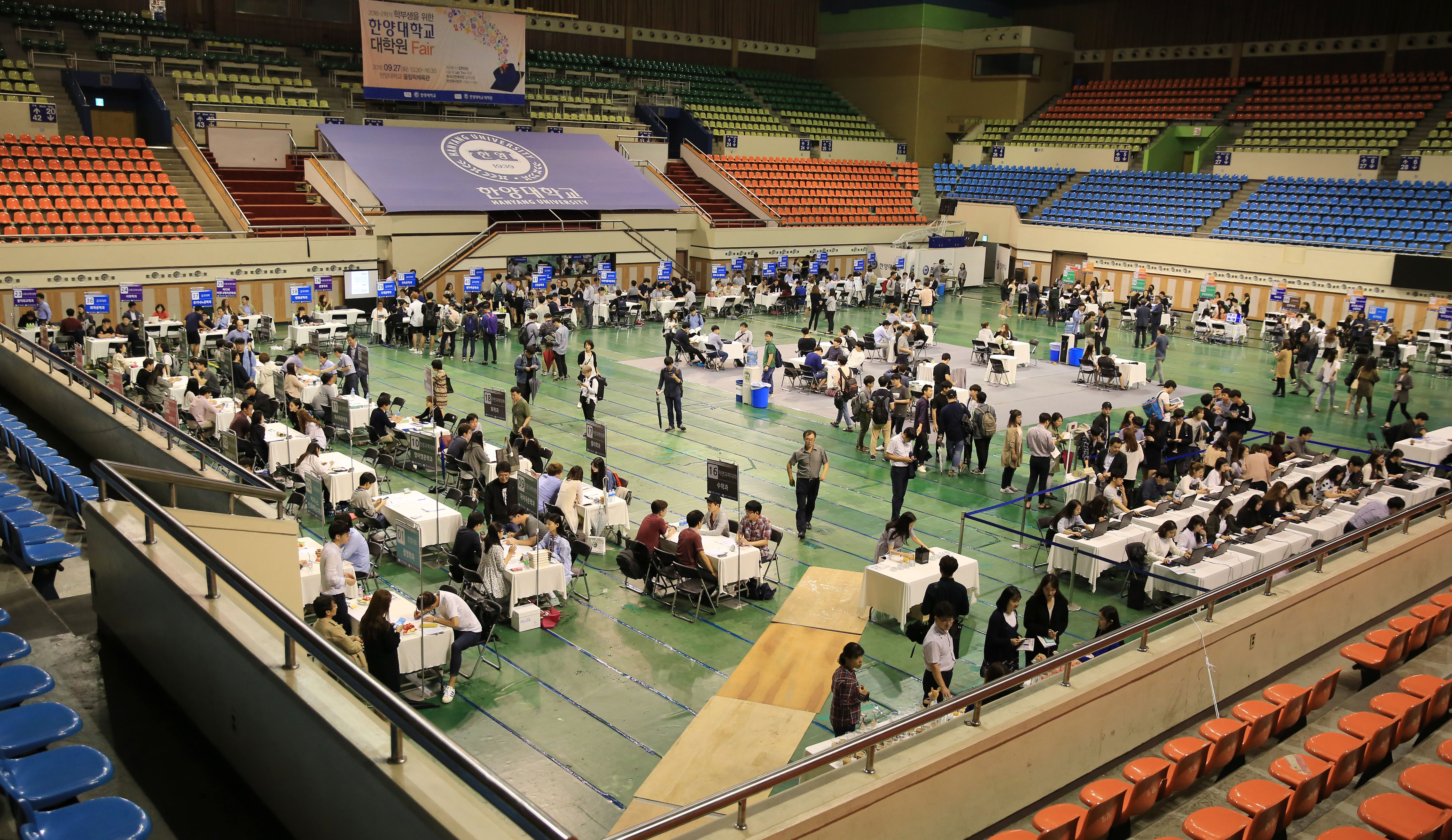 대학원 박람회(Fair)를 개최했다. 사진은 학생들이 학과별 일대일상담을 받는 모습