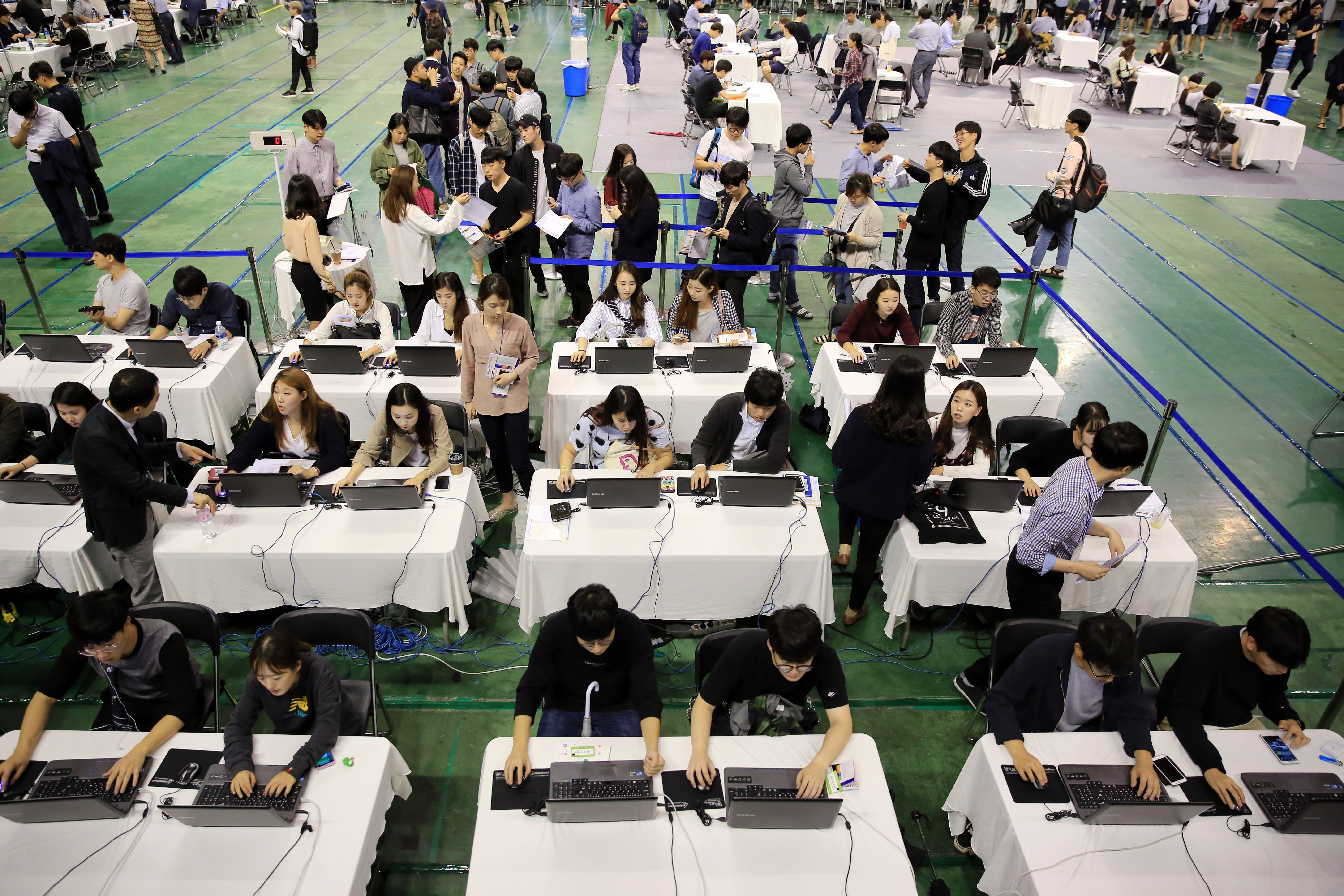 대학원 박람회(Fair)를 개최했다. 사진은 학생들이 현장에서 원서를 접수하는 모습