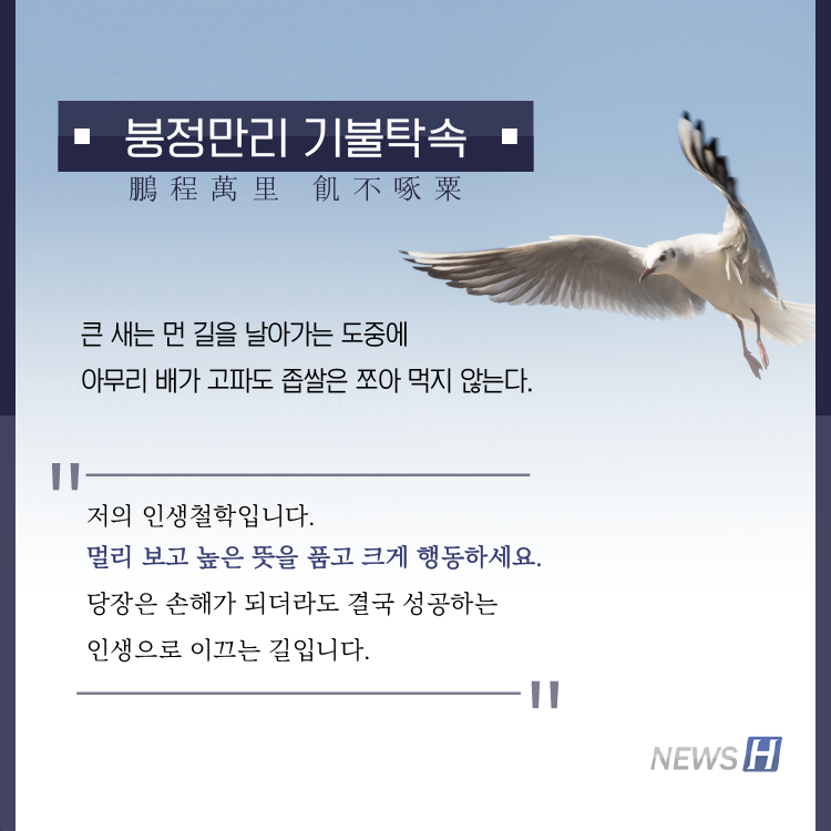 ▲ 카드뉴스의 원본 기사는 아래에서 읽을 수 있습니다큰 새가 먼길을 가듯이▲ Click to read the English articleLook Far, and Take Steady Steps