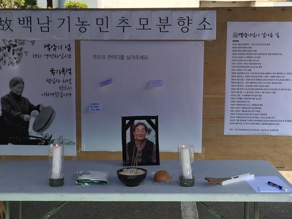 9월 25일 사망한 고 백남기 씨를 추모하는 분향소가 한양대 등 여러 대학에 설치됐다. 뉴스1 등 9월 28일 자 언론 보도에 따르면 한양대와 고려대, 성균관대 등 10여 개의 대학에 분향소가 마련된 것으로 알려졌다.한편 한양대 총학생회는 26일, 페이스북 페이지를 통해 사회대 옆에 분향소를 설치했다고 밝혔다. ▲사회대 옆에 설치된 분향소 (이미지출처: 총학생회 페이스북 페이지)
