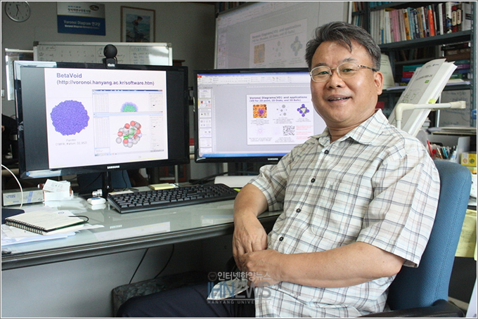 평면 위에서 임의의 점 2개를 상상해보자. 이 두 점 사이의 거리를 이등분하는 수직이등분선이 존재한다. 하나의 점을 더 생각해보자. 같은 방식으로 세 점 사이에는 세 개의 수직이등분선이 정의되며, 그 세 개의 선들은 하나의 교점을 만든다. 나아가, 점들이 더 늘어날 경우를 생각해보자. 가장 가까운 두 점을 수직이등분선 하는 선들이 모이며 도형을 이루는데, 이를 ‘보로노이 다이어그램’(Voronoi diagram)이라고 한다.(그림보기) 김덕수 교수(기계공학부)는 보로노이 다이어그램을 응용해 단백질의 3차원 구조를 예측하는 ‘베타에스시피웹’(이하 BetaSCPWeb)프로그램을 개발했다.