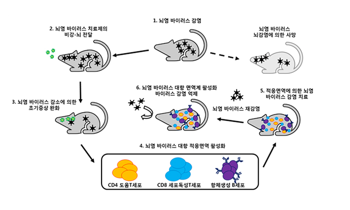 뇌염바이러스를 감염시킨 동물을 대상으로 실험을 진행했다. 생쥐의 비강을 통해 뇌로 약물을 전달해 뇌염바이러스를 치료했다. 치료 RNA가 뇌 조직에 효과적으로 전달되는 것을 증명했다. 뇌염바이러스의 초기 감염을 억제할 수 있었다. 면역력을 획득한 생쥐는 추가적인 바이러스 감염에 대해 자연 치유했다. 백신이나 치료제가 없는 뇌염바이러스 감염 질환의 치료법 연구에 새로운 대안을 제시했다.