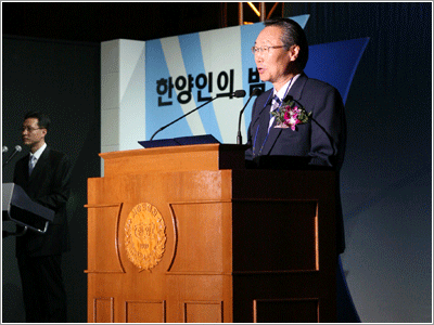 한양인의 밤 준비 위원장 이종훈(사학 79년 졸) 동문은 초대사에서 “한양인의 밤 행사에 참석해 주셔서 감사하다”며, “발전기금 모금행사에 많이 참여해서 모교에 조금이나마 보탬이 되어 달라”고 부탁했다. 이어서 총동문회 김진열(전기 61년 졸) 회장은 “모교 한양은 우리의 영원한 고향이다”고 말하며, “올해는 세계한양인의 만남 행사를 함께 치러, 세계 각지의 한양 동문들이 함께해 더욱 의미 있는 행사다”라며 환영사를 마무리했다.