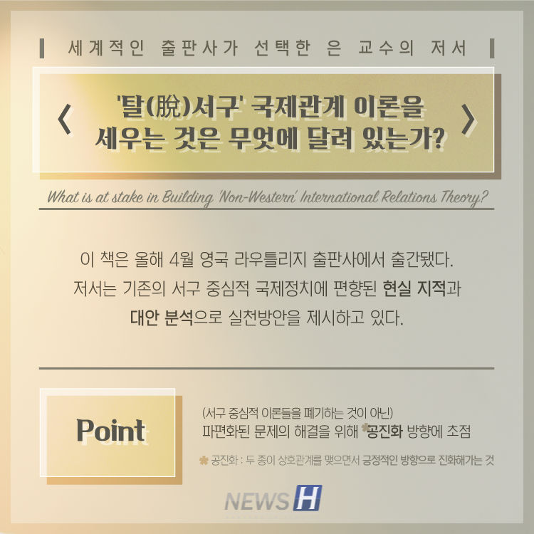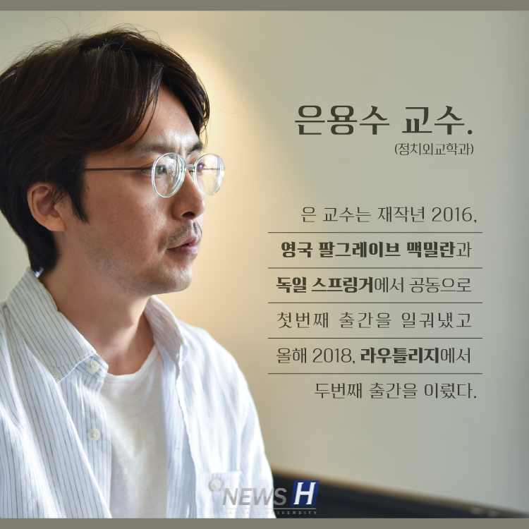 영국 라우틀리지 출판사에서 두 번째 저서를 출간한 은용수 교수(정치외교학과) ▲ 카드뉴스의 원본 기사는 아래에서 읽을 수 있습니다- 세계적인 출판사 장벽을 다시 한번 뛰어넘다.▲ Click to read the English article- Going Against Dominant Paradigms 전채령 dotteil@naver.com 다른기사 보기 저작권자 © 뉴스H 무단전재 및 재배포 금지 당신만 안 본 뉴스 [포토스토리] "AI 시대 해답은 브랜딩", 오세훈 서울시장의 경영학 특강 현장 Into the Creation 2025, 창작자들의 꿈에 날개를 이찬규 학생, 사이버·우주 융합연구로 2025 사이버안보논문공모전 대상 수상 한양대, '2026 QS 지속가능성 순위' 세계 161위, 국내 4위 기록 해커톤에서 인턴십까지, 현대차 사내 스타트업에 다녀오다 [창업지원단 인턴십 경험기] [포토스토리] 한양 속에 사회혁신을 품다, SSIR 먼슬리 콜로키움 현장 행복은 좋은 경험의 ‘빈도’에서, 서은국 교수와 함께한 한양인의 힐링콘서트 현장 2025 중앙일보 대학평가 서울 3위, ERICA 13위 댓글삭제 삭제한 댓글은 다시 복구할 수 없습니다. 그래도 삭제하시겠습니까? 비밀번호 닫기 기사 댓글 1 댓글 접기 로그인 후 이용 가능합니다. 댓글 내용입력 비회원 로그인 이름 비밀번호 댓글 내용입력 댓글쓰기 계정을 선택하시면 로그인·계정인증을 통해 댓글을 남기실 수 있습니다. 회원 로그인 비회원 글쓰기 이름 비밀번호 자동등록방지 로그인 옵션 창닫기 댓글목록 최신순 추천순 욕설, 타인비방 등의 게시물은 예고 없이 삭제 될 수 있습니다. 정외 2018-07-10 16:34:34 더보기 삭제하기 교수님~~~~ 정외과에 있어주셔서 감사합니다! 존경합니다! 기획기사 [포토스토리] "AI 시대 해답은 브랜딩", 오세훈 서울시장의 경영학 특강 현장 Into the Creation 2025, 창작자들의 꿈에 날개를 해커톤에서 인턴십까지, 현대차 사내 스타트업에 다녀오다 [창업지원단 인턴십 경험기] [포토스토리] 한양 속에 사회혁신을 품다, SSIR 먼슬리 콜로키움 현장 행복은 좋은 경험의 ‘빈도’에서, 서은국 교수와 함께한 한양인의 힐링콘서트 현장 [카드뉴스] '한양대학교 SDGs? 알고 보니 내 일상 속에 있었다!' 1편